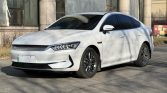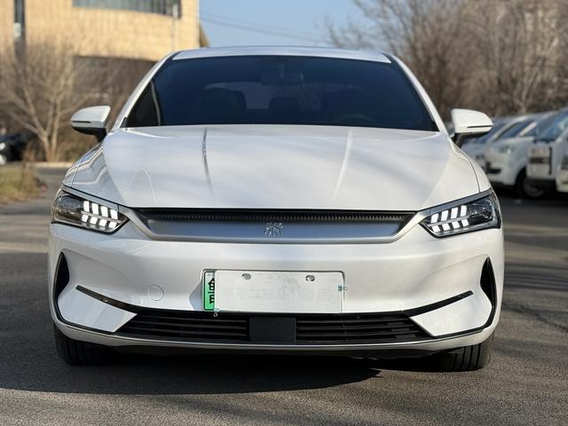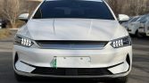 BYD Qin PLUS EV 2021 model presents a clean, contemporary aesthetic as a white