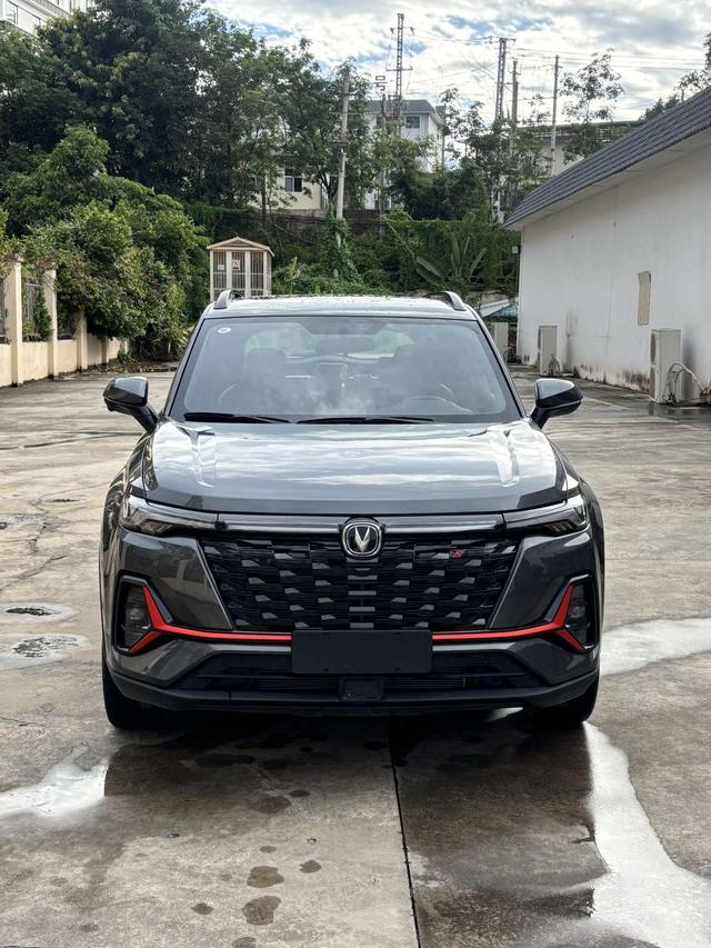 The deep gray Changan CS35 PLUS 2023 Enjoyment Edition Blue Whale NE 1.4T DCT Luxury compact SUV radiates a sophisticated, understated charm ideal for urban commuters and small families. Its front fascia features a sleek mesh grille framed by sharp LED headlights, crafting a modern, dynamic silhouette that stands out on city streets. Smooth body lines flow from the front fenders to the rear, blending aerodynamic efficiency with a sturdy compact SUV stance. The deep gray finish adds elegance while offering practicality—hiding minor road dust and scratches better than lighter hues—making it low-maintenance for daily use. Stylish multi-spoke alloy wheels complement the design, adding a touch of refinement to its functional build.