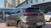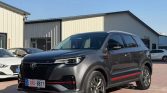 SUV features a deep gray exterior that highlights its balanced proportions and contemporary styling. The front end is characterized by a bold grille design flanked by sleek, multi-element headlights. Clean body lines and a slightly tapered roofline contribute to a streamlined silhouette, while distinctive alloy wheels add a touch of sophistication to its overall presence.