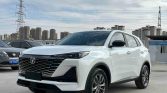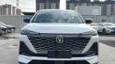 The 2024 Changan CS55 PLUS 3rd Gen 1.5T DCT Excellent Edition in white showcases a sleek, futuristic compact SUV silhouette. Its crisp white finish accentuates the third-generation model’s bold design elements: a dynamic front grille with an intricate mesh pattern, sleek LED headlights with sequential turn signals, and flowing character lines that add movement along the sides. Paired with 18-inch alloy wheels, the vehicle exudes an athletic stance, while roof rails and a rear spoiler enhance utility and aerodynamics. Integrated LED taillights and a sculpted rear bumper complete the cohesive look, with the white exterior radiating freshness and timelessness—ideal for urban commutes and weekend adventures alike.