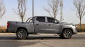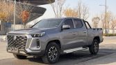 Pickup 2023 model presents a commanding and modern presence in a deep gray metallic finish. The extended cargo box is a defining feature, significantly increasing load capacity for work or recreational gear. Its design combines a bold front grille, sleek LED lighting signatures, and pronounced body lines, creating an aesthetic that balances rugged capability with contemporary sophistication.