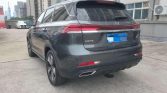 SUV presents a sophisticated and modern presence in a deep gray metallic finish. The front fascia is characterized by a large, intricately textured grille that seamlessly merges with sleek, full-LED headlight units. Strong character lines flow along the body, emphasizing its confident stance and substantial proportions. Stylish alloy wheels and a distinctive full-width LED taillight bar complete its contemporary and upscale aesthetic.