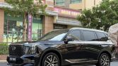 This GAC Trumpchi GS8 2022 midsize SUV presents a bold and commanding road presence. Finished in a deep black, its exterior features a prominent grille and sharp, angular body lines that convey strength and modernity. The full LED lighting system, both front and rear, adds a distinctive signature and enhances visibility. Its substantial dimensions are balanced with refined detailing, resulting in a sophisticated and muscular aesthetic.