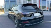 The Honda HRV 2023 model introduces a completely new design language, moving away from its predecessor to adopt a more robust and upright SUV stance. The black exterior finish accentuates its muscular proportions and distinctive front grille, which seamlessly integrates with the sleek LED headlights. A defining character line runs horizontally across the body, creating a solid and planted appearance. The coupe-like roofline flowing into a strong rear end gives the vehicle a modern and sophisticated presence, setting it apart in the compact SUV segment with its confident and contemporary styling.