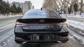 The Hyundai Elantra black Sedan exterior exudes sophistication, with its glossy finish effectively hiding minor dirt and adding a sense of luxury. The Elantra’s sleek, aerodynamic silhouette is highlighted by sharp body lines, a parametric grille, and LED headlights and taillights. 17 – inch alloy wheels (standard for the LUX trim) complement the sedan’s sporty yet refined stance, making it equally at home on urban streets and weekend getaways. The dark color palette enhances the car’s dynamic proportions, blending athleticism with elegance.