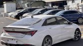 The 2022 Hyundai Elantra 240TGDi DCT LUX Premium Edition in white embodies Hyundai’s bold parametric design language. Its glossy white body features a Parametric Jewel Grille with sharp chrome accents, LED daytime running lights (DRLs) forming a distinctive “H” pattern, and 17-inch alloy wheels with dynamic spoke detailing. The sedan’s sloping roofline and sculpted body lines create a sporty yet refined silhouette, while the white finish enhances its modern, clean aesthetic—ideal for urban commutes and family outings. Subtle chrome window trim elevates its premium feel without sacrificing practicality.