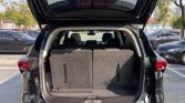 Inside, the seven-seat configuration provides flexible family transportation with durable materials throughout. The black interior features soft-touch surfaces on the dashboard and door panels, while fabric seats offer comfortable support for long journeys. The first two rows provide generous legroom and headroom, while the third row accommodates additional passengers comfortably. The second-row bench slides and reclines for added versatility, and the 60/40 split-folding third row expands cargo capacity significantly when needed. Multiple USB ports, cup holders, and storage compartments keep everyone organized.