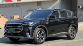 SUV in Wind Edition trim, finished in deep black, offers families an engaging blend of space, control, and value. This model targets buyers seeking maximum passenger capacity with the added involvement of a manual transmission. The black metallic paint emphasizes the vehicle’s bold front grille, muscular body lines, and protective cladding, creating a rugged yet sophisticated appearance that stands out in the three-row