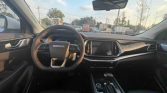 Inside, the six-seat configuration provides a premium experience with second-row captain’s chairs and a third-row bench. The black interior features soft-touch materials on the dashboard and door panels, while synthetic leather seats offer comfortable support for long journeys. The first two rows provide generous legroom and headroom, while the third row accommodates two passengers comfortably. The 50/50 split-folding third row expands cargo capacity significantly when needed for luggage or equipment.