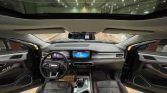 SUV presents a commanding presence with its deep black finish. This mid-size crossover features a modern design characterized by clean lines and confident proportions. The dark exterior emphasizes the vehicle’s bold grille and sculpted body panels, creating a sophisticated appearance. LED lighting elements provide clear illumination while complementing the overall aesthetic. The black paint finish adds a premium touch to this practical family vehicle, making it suitable for both urban and suburban environments.