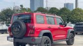This Tank 300 2020 SUV is instantly recognizable due to its classic, boxy silhouette and bold red finish, projecting a strong and adventurous character. The design emphasizes functionality with features like high ground clearance, prominent wheel arches, and robust body cladding. A rear-mounted full-size spare tire and practical roof rails further underscore its purpose-built, off-road ready appearance.