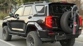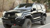 SUV establishes a commanding presence with a design that blends sharp, futuristic lines with robust, off-road-ready proportions. Its deep black finish accentuates the angular bodywork, pronounced wheel arches, and elevated stance. Key functional elements include integrated roof rails, protective body cladding, and a high ground clearance, projecting an image of advanced capability for both urban and adventurous settings.