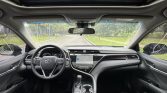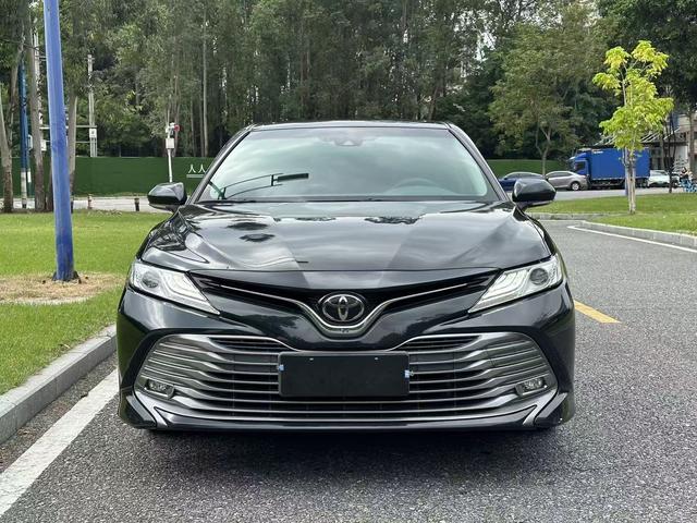 The 2019 facelifted 2.0G Toyota Camry Luxury Edition of this mid-size black sedan presents a sleek and sophisticated appearance. Its aerodynamic lines flow smoothly from front to rear, enhanced by the glossy black paint that boosts its premium vibe. The front grille features a refined design paired with sharp headlights, adding modernity. The overall silhouette exudes elegance, fitting both daily commutes and formal occasions.