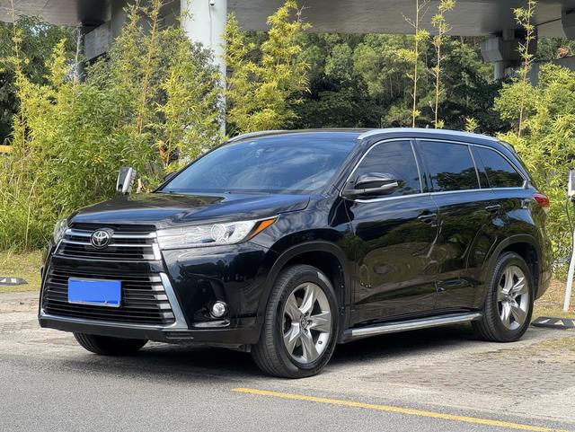 The 2018 Toyota Highlander 2.0T AWD Premium 7-Seater (China VI Emission Standard) in black blends sleek luxury with rugged SUV practicality. Its deep gloss-black body is accented by a chrome-trimmed front grille (balancing elegance and sportiness), LED headlamps with integrated daytime running lights, and 19-inch alloy wheels (upgraded from entry trims). Muscular body lines, raised ground clearance, and blacked-out window moldings enhance road presence, making it equally suited for urban commutes and light off-road getaways without sacrificing refinement.