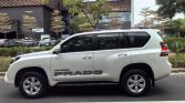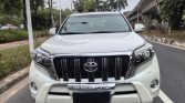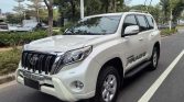 The 2016 Toyota Prado SUV 2.7L Automatic Luxury Edition in glossy white balances rugged off-road identity with refined styling. Its signature rear-mounted spare tire frees trunk space while emphasizing Prado’s iconic toughness. Upgraded from standard variants, it features a chrome-accented front grille, LED daytime running lights, 18-inch alloy wheels, and black wheel arches with side steps. A 215mm ground clearance and muscular body lines suit both urban commutes and outdoor adventures.