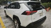 Safety is a core strength, featuring Toyota’s Safety Sense suite: pre-collision detection with pedestrian alert, lane departure warning with steering assist, adaptive cruise control, and automatic high beams. Additional safety features include a rearview camera with dynamic guidelines, parking sensors, and multiple airbags. The spacious trunk offers generous cargo capacity, expandable via 60/40 split-folding rear seats. Roof rails add versatility for carrying bikes or camping equipment, making this white 4WD SUV a practical choice for both daily use and outdoor excursions.