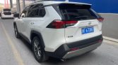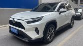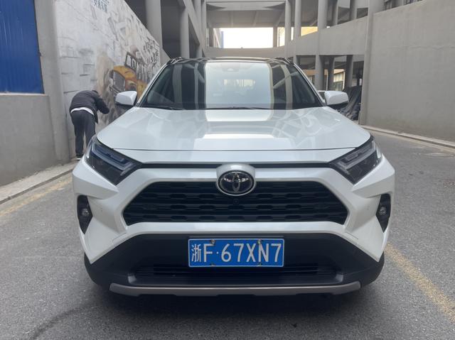 The 2023 Toyota RAV4 2.0L CVT SUV Two-wheel Drive Fashion PLUS Edition in white presents a dynamic, contemporary exterior. Its front fascia features a bold black-accented grille paired with sleek projector LED headlights and daytime running lights, crafting a striking road presence. Crisp, muscular body lines extend from the front fenders to the rear, where wrap-around LED taillights and a subtle roof spoiler enhance its athletic vibe. The white finish amplifies its clean, modern look, complemented by 18-inch alloy wheels and roof rails that blend style with utility.