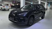 SUV presents a commanding and sophisticated presence. The deep black exterior finish accentuates its sharp, angular body lines and prominent front grille. Distinctive badging denotes its advanced electrified powertrain. The overall design merges a bold, athletic stance with functional elements like sculpted wheel arches and integrated rear spoiler.