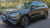 The Volkswagen Tharu 2022 280TSI 2WD Luxury Edition in sophisticated dark gray presents a refined yet dynamic presence on the road. Its contemporary design features a sleek front grille with chrome accents, full LED lighting with automatic headlight function, and 18-inch alloy wheels that enhance its premium appeal. The deep gray metallic finish gives the vehicle a modern, understated elegance while maintaining excellent visibility in various lighting conditions.